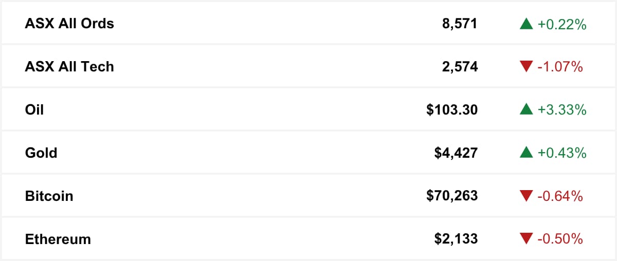 ASX as at market close. Commodities and crypto in USD.
