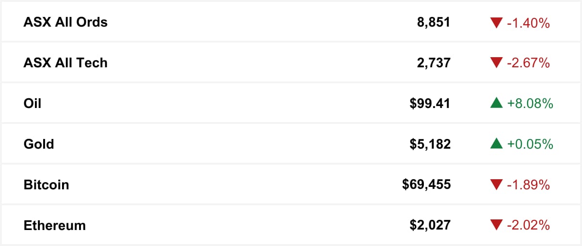 ASX as at market close. Commodities and crypto in USD.