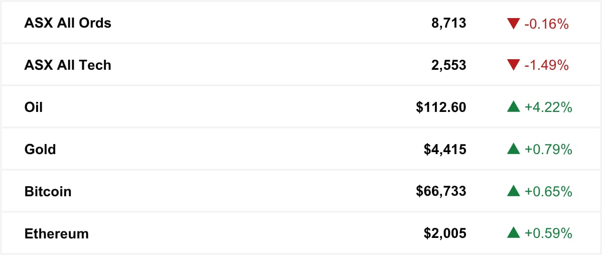 ASX as at market close. Commodities and crypto in USD.