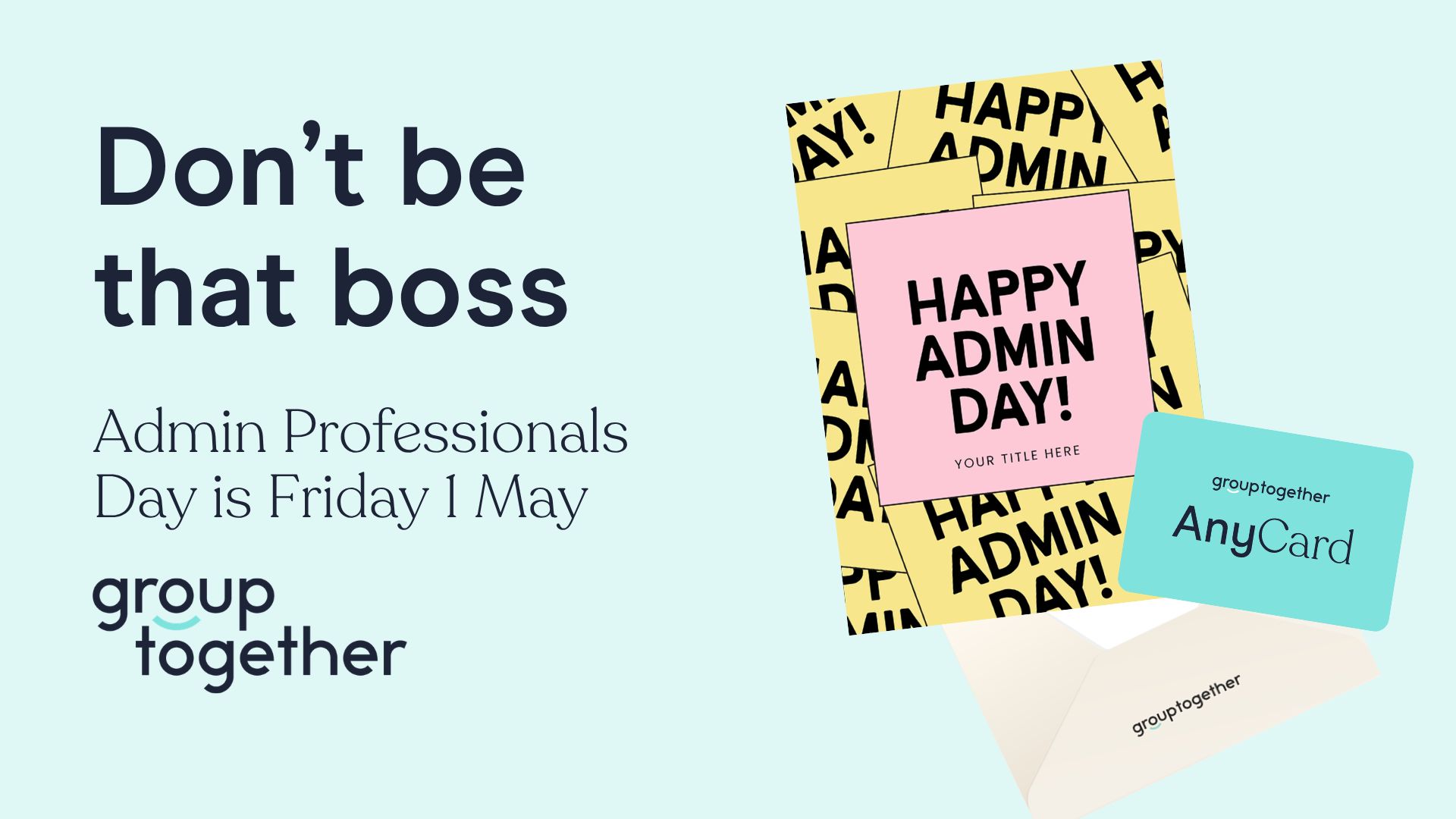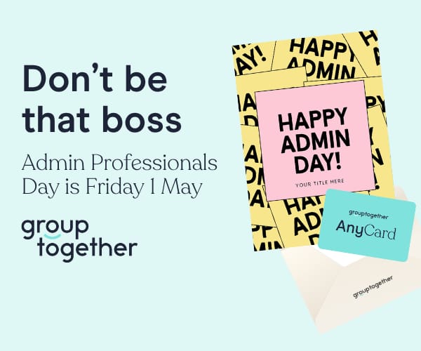 Don't panic. GroupTogether makes it easy to send a personalised eGift Card in just 2 minutes. Your EA will never know you almost forgot! Admin Professionals Day - Friday 1 May.